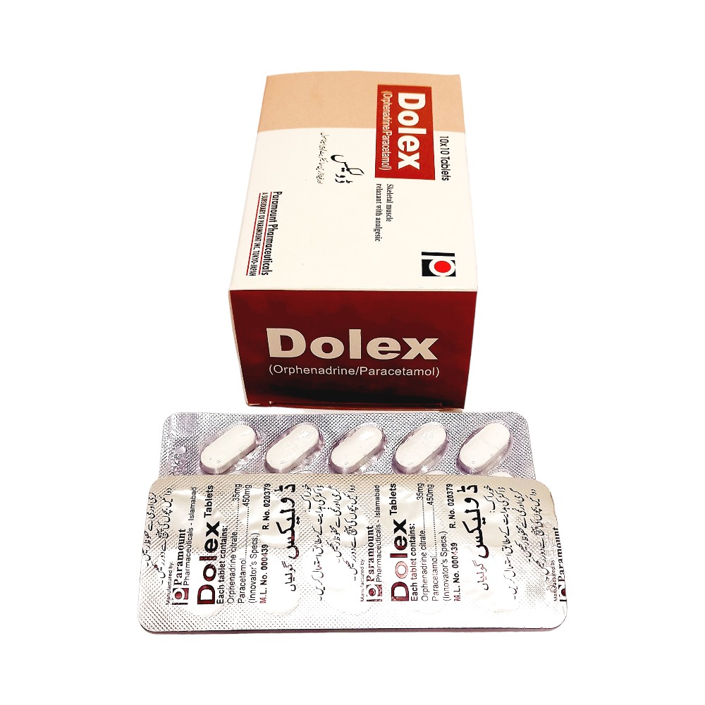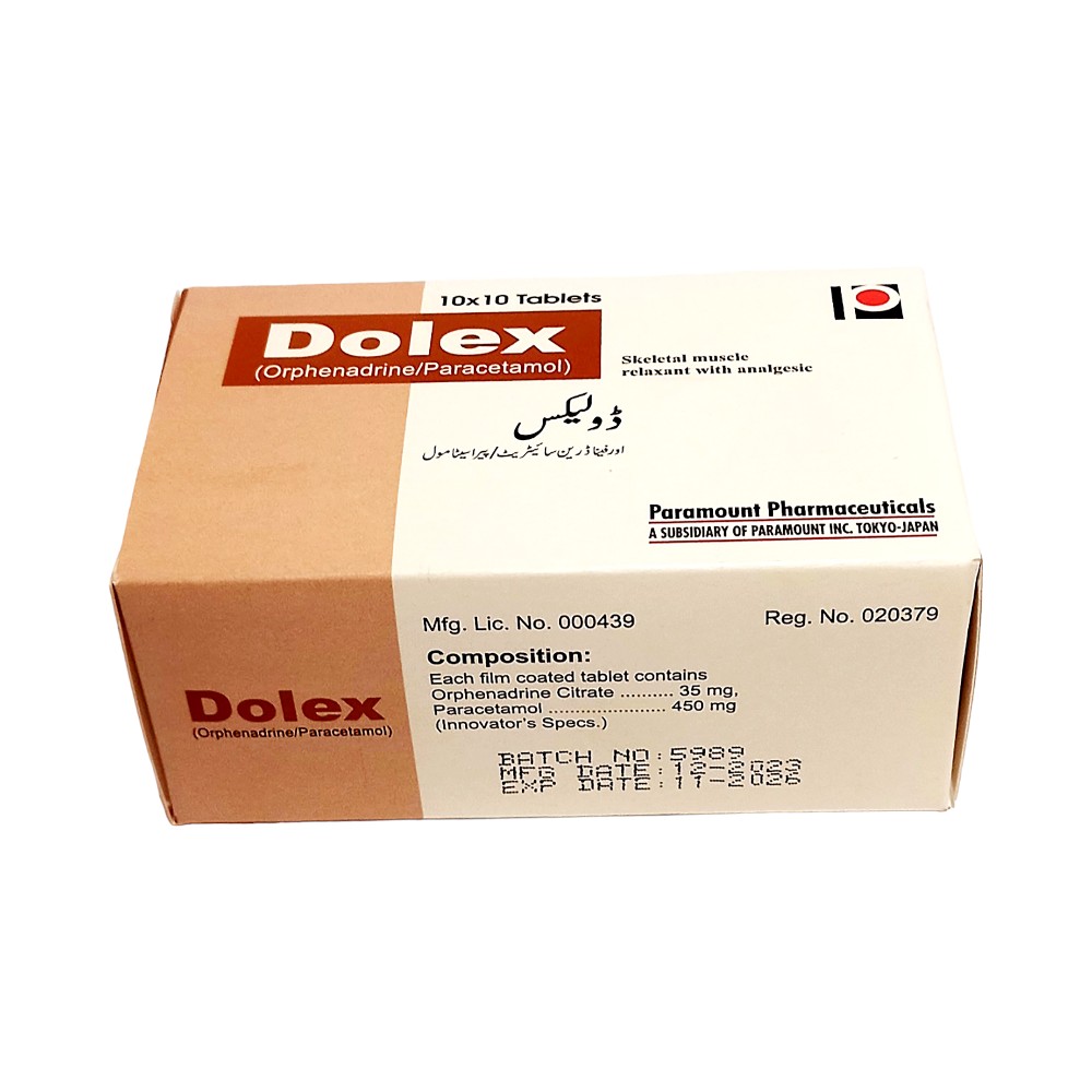 Orphenadrine Citrate + Paracetamol Dolex 20’s, 100’s,