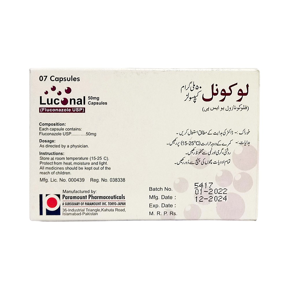 | Fluconazole | Luconal Caps | 50 mg | 7’s | Capsule |