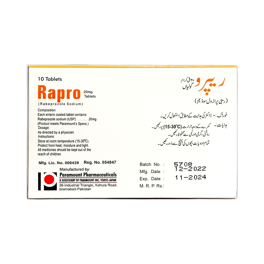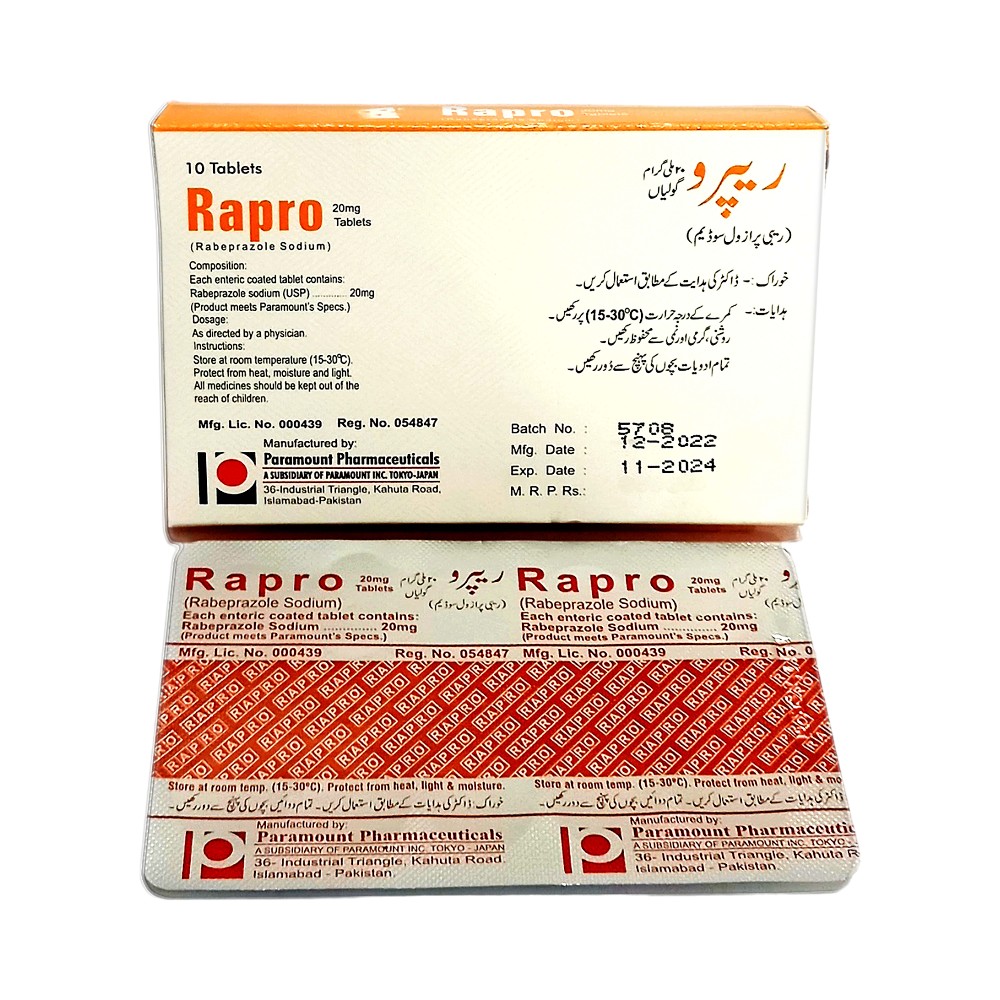 | Rabeprazole | Rapro | 20 mg | 10’s | Tablets |